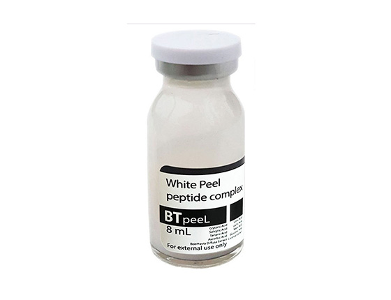 White peeling BTpeel - инновационный всесезонный осветляющий пилинг нового поколения, с биостимулирующим и обновляющим действием. На основе комплекса кислот (Citric Acid , Lactic Acid , Malic Acid , Gluconic Acid , Ascorbic Acid , Glycolic Acid , Salicylic Acid , Tartaric Acid) и экстракта пунарнавы пилинг эффективно борется с пигментацией и отбеливает кожу, блокируя меланогенез. Придаёт коже однородный тон. Обладает противовоспалительным и антиоксидантным действием. Так же уникальный состав пилинга обогащён запатентованным пептидным комплексом, направленным против старения кожи, улучшения её тургора, эластичности и плотности. Обновление кожи происходит незаметно, комфортно и плавно, в течение 7-10 дней. В это время рекомендуется использовать солнцезащитные средства, увлажняющие маски и крема. Незаметный процесс реабилитации даёт возможность выйти на работу или провести важную встречу не опасаясь за внешний вид. Белый пилинг не требует нейтрализации. А при проведении необходимых тестов возможно применение в течение в нескольких часов, что при правильном использовании может дать выразительный эффект. Дерматологически протестирован и сертифицирован.
