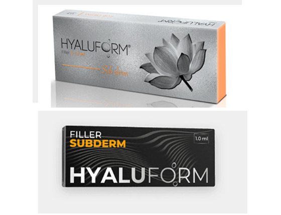 и подкожного введения. Гиалуформ® 2,5 % Филлер – уникальная форма гиалуроновой кислоты высокой очистки, получаемая путем бактериальной ферментации, стабилизированная методом твердофазной модификации. Материал не содержит животных белков. Гиалуроновая кислота является важным структурным компонентом кожи, соединительной ткани и синовиальной жидкости.