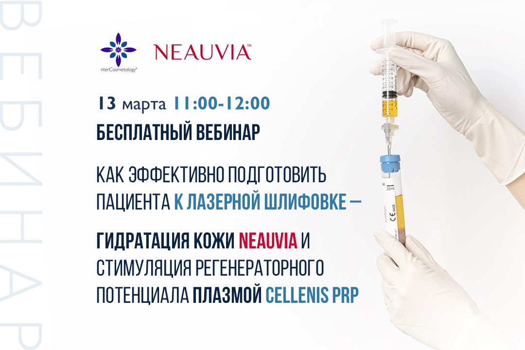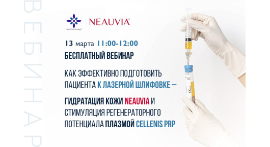 Приглашаем вас принять участие в бесплатном вебинаре «Как эффективно подготовить пациента к лазерной шлифовке – гидратация кожи Neauvia и стимуляция регенераторного потенциала плазмой Cellenis PRP», который состоится 13 марта, 11.00-12.00(по московскому времени).