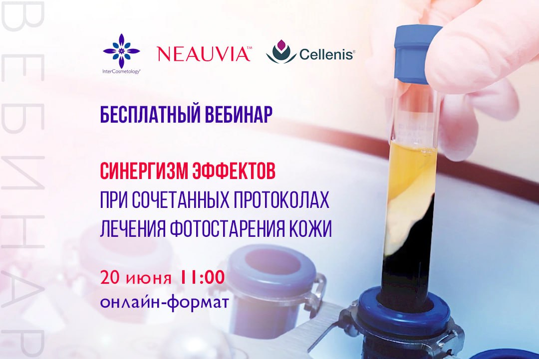 Приглашаем вас принять участие в бесплатном вебинаре «Синергизм эффектов при сочетанных протоколах лечения фотостарения кожи: PRP-терапия Cellenis с технологией импульсного света IPL и биоревитализацией Neauvia Hydro Deluxe», который состоится 20 июня, 11.00-12.00(по московскому времени).