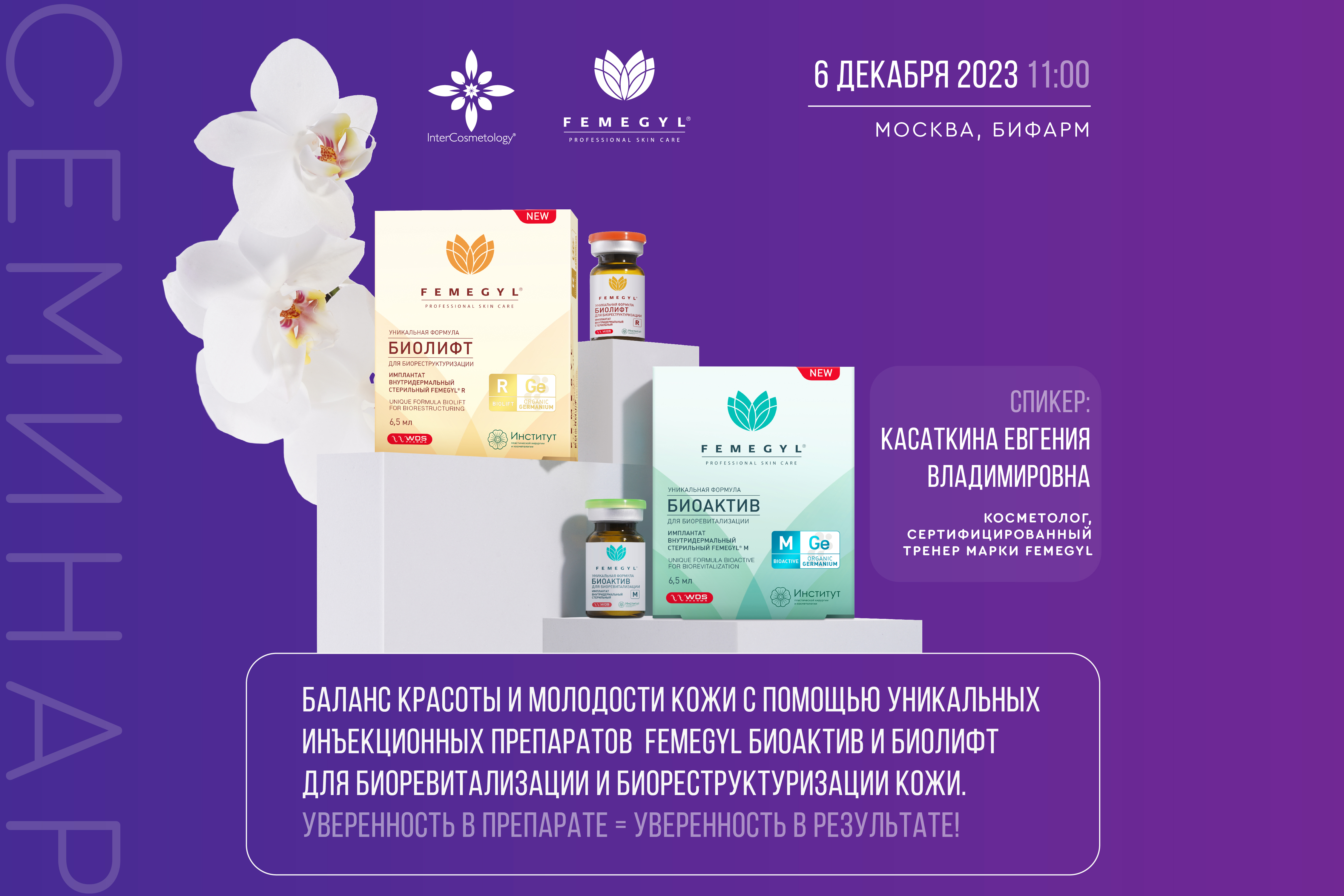 Желание узнать о сертифицированных препаратах для биоревитализации и биореструктуризации кожи Российского производства, которые имеют подтверждённую эффективность всего за 2 применения. Семинар проводится в Москве.