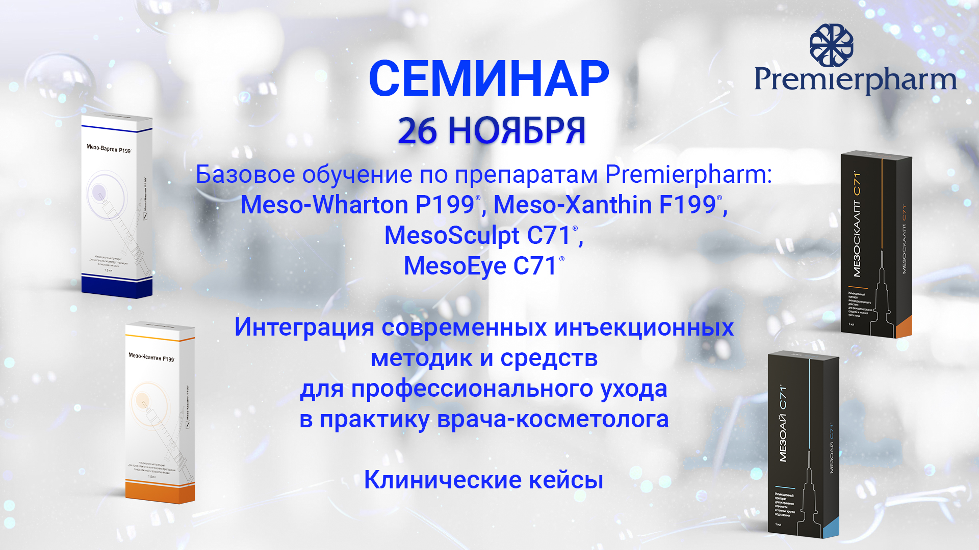 Базовое обучение по препаратам Premierpharm Meso-Wharton P199, Мeso-Хanthin F199, MesoSculpt C71, MesoEye C71