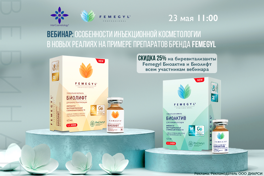 Скидка 25% на биревитализанты Femegyl Биоактив и Биолифт всем участникам вебинара